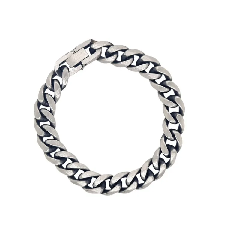 Discover the rugged charm of the Revolution Matt Steel Curb Link Bracelet, a perfect blend of industrial style and modern elegance. Made from high-quality stainless steel with a smooth matt finish, this 21cm bracelet exudes strength and sophistication. Its bold curb link design adds a masculine edge to any outfit, making it a versatile accessory for both everyday wear and special occasions. This bracelet is for those who appreciate understated luxury and timeless design, offering a distinctive touch to your look.