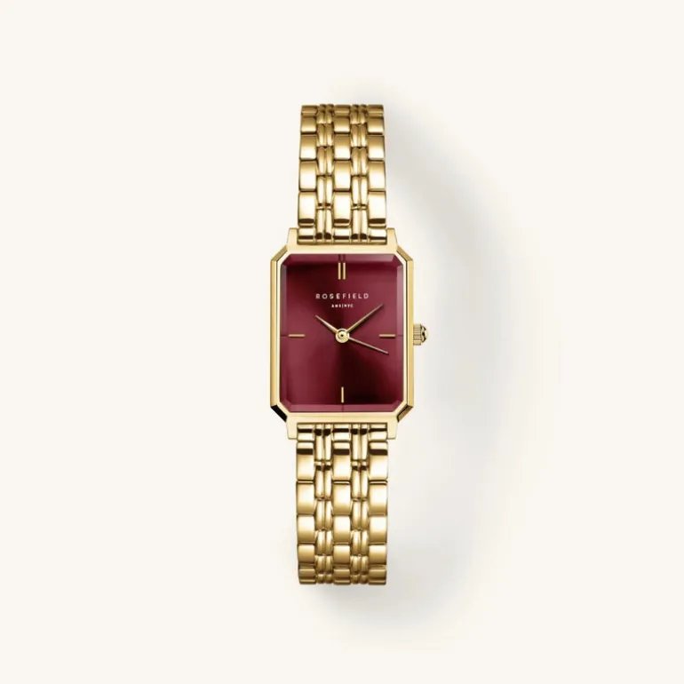 Rosefield Octagon XS Sunray Gld Burgandy Watch