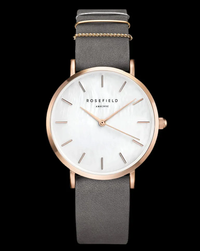 Rosefield W Village MOP Dial Rose Gold Grey Sued Strap