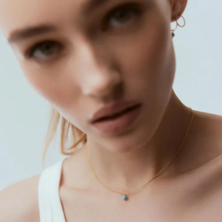 Discover the essence of quiet luxury with our Superfine Mini Turquoise Necklace. Handcrafted in 14k gold-plated sterling silver with a delicate turquoise gemstone, it exudes edgy-luxe charm. Turquoise, the birthstone for December, is not only beautiful but also promotes inner calm and emotional balance.