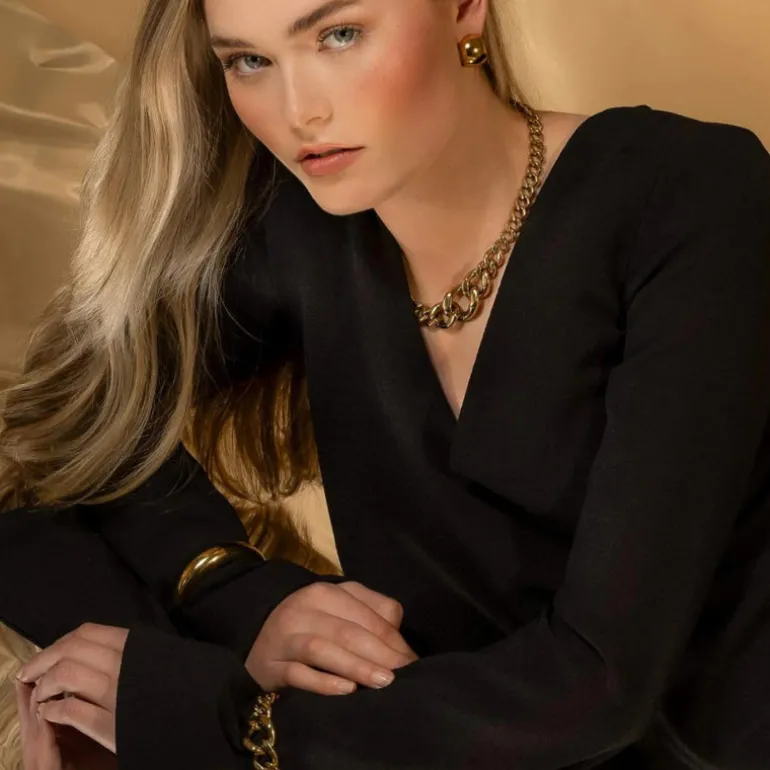 Transform your style with the Phoenix Bracelet, in highly durable 14k gold vacuum-plated stainless steel. This striking piece features a graduating curb chain that drapes effortlessly on the wrist, radiating cool elegance. The sleek undertone of 14k gold adds a luxurious appeal, reflecting 90s runway cool and embodying the opulence of that vintage era. This modern twist on a classic Silk & Steel design will soon become your must-have statement accessory.