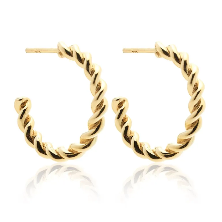 Twisted half-hoop rope-style earrings in 14k gold-plated sterling silver. Designed in New Zealand and handmade by artisans.