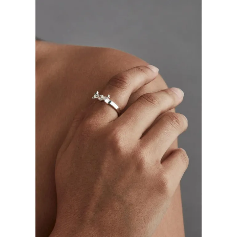The ‘Cross Bones Ring’ features our intricate bow-like, crossbones charm with a central engraved logo, made from solid sterling silver set of our narrow band. Part of our latest collection ‘Perils of the Heart’, this delicate ring is a symbol of the transformative power of love and loss.