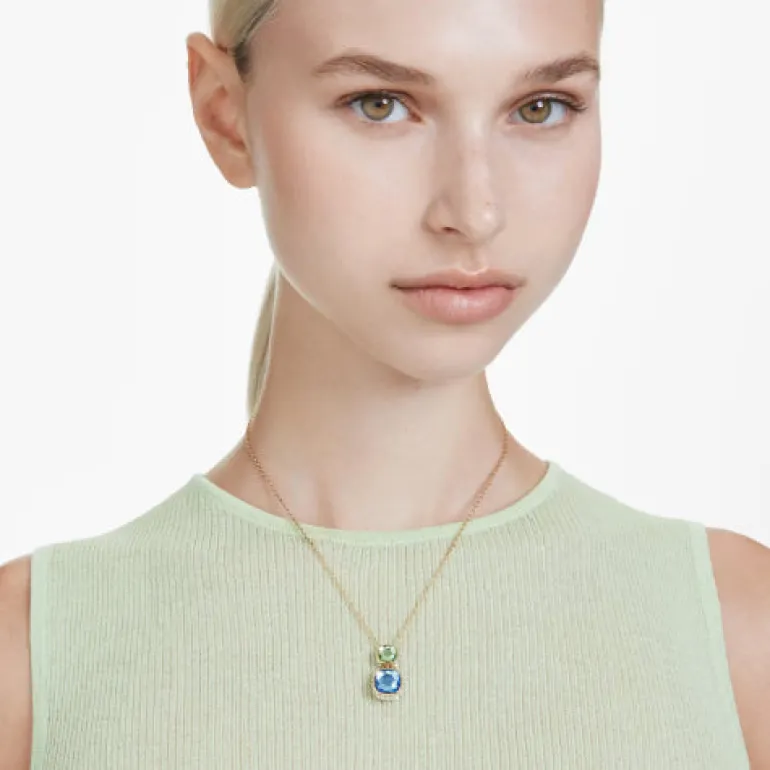 Whichever colour you’re feeling, this vivid Chroma Twist pendant can match the mood. The gold-tone plated design connects to the chain with a Swarovski ReCreated™ crystal in green. Below, the reversible design means you can display a Swarovski ReCreated™ crystal in blue or a vibrant crystal in pink. Flip the look to coordinate with your style and wear it alongside other Chroma Twist jewellery for a vision of all-over joy.Chroma Twist jewellery contains at least 50% Swarovski ReCreated™ crystals, and it is our first collection designed with circularity in mind.