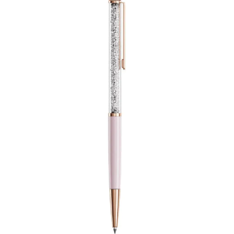 This slender ballpoint pen offers a timeless accessory for endless creativity. The slimline design is filled with around 400 clear crystals, which are visible through the long transparent window. Along with a lacquered blush pink barrel, the pen includes gold-tone finishing for an ultra-luxurious look. Gift to yourself or someone you know who has a poetic way with words. Refills of black and blue inks are available to purchase in Swarovski stores.
