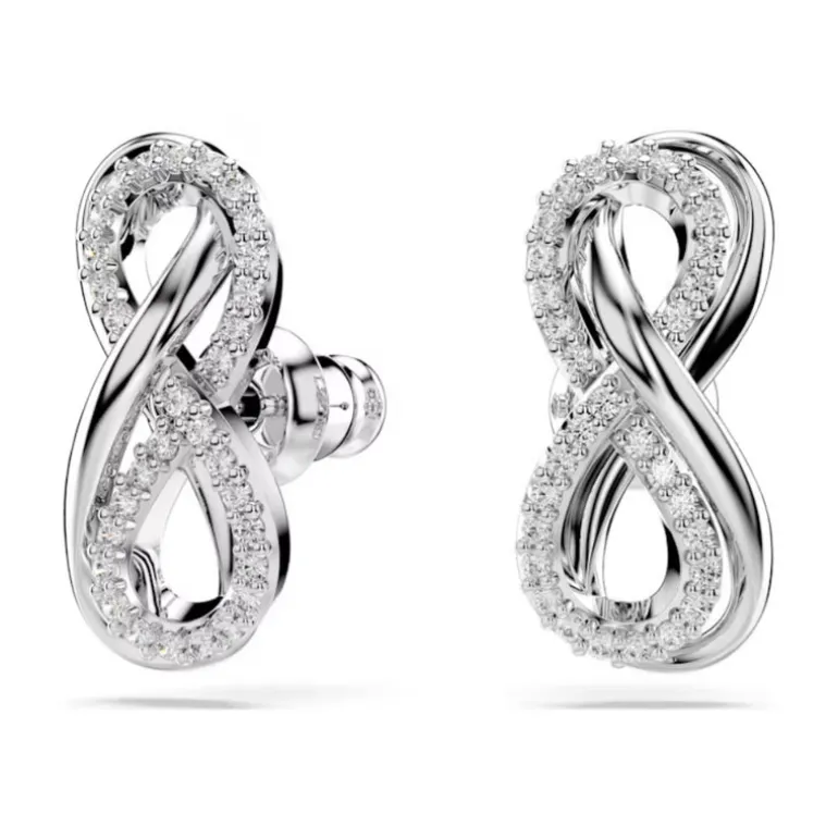 These striking Hyperbola earrings are a style you can wear forever. Each rhodium-plated piece is crafted in the shape of an infinity motif and adorned with an array of clear Swarovski Zirconia. Timeless and graceful, they can be paired with a matching pendant or worn alone for subtle luxury.
