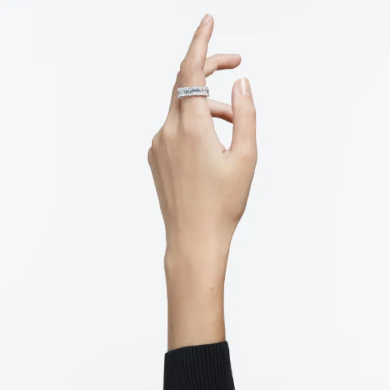 A striking, elegant look distinguishes this Swarovski ring. A row of gleaming white stones, cut into a faceted, rectangular shape, lends it an air of refined simplicity. The unbroken line of sparkling stones defines the character of the design and matches well with equally elegant pieces of jewellery, especially other rings for an on-trend stacked look. A great match for special occasions, and an inspired gift giving idea.