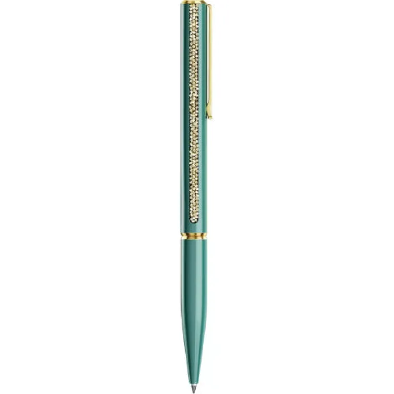 Combining sleek elegance with modern minimalism, this Shimmer Glide ballpoint pen is the most sophisticated way to express your creativity. On each side of the lacquered green barrel, the strips of ultra-fine Crystal Rocks are designed to reflect the light with every movement. For additional precision and functionality, the design also includes a gold-tone finished clip and a classic twist mechanism. The Shimmer Glide ballpoint pen is the perfect gift for a birthday or anniversary, or any occasion when you wish to show your appreciation. Blue and black ink refills are available to purchase in Swarovski stores.