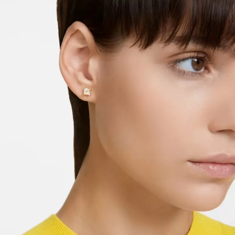 Radiate positivity with these sunshine-yellow earrings from the Stilla family. This cute pair is expertly crafted from square-cut stones set in gold-tone plating. Dial up the fun if you have multiple piercings and mix them with other colourful styles from this playful collection.