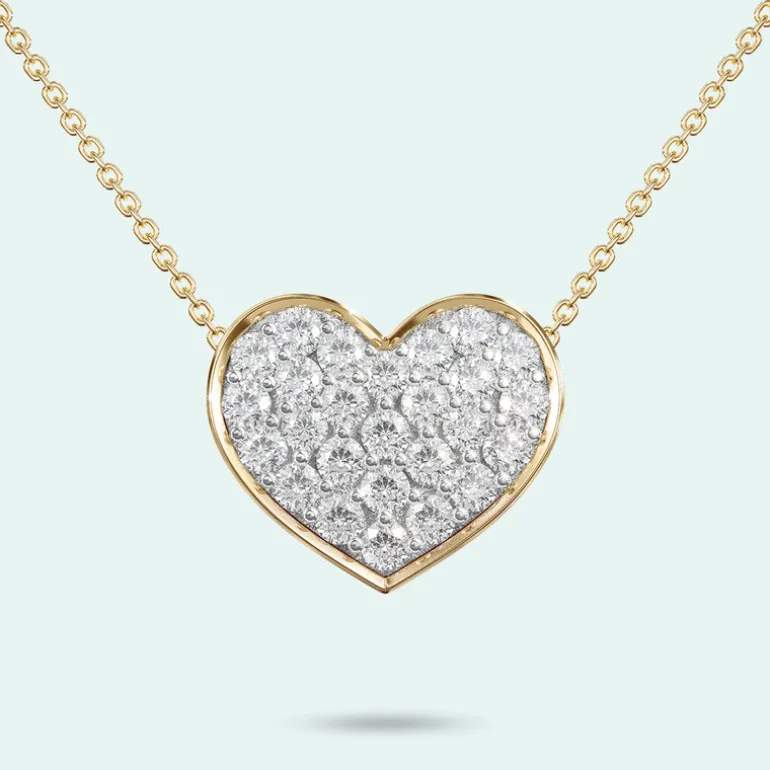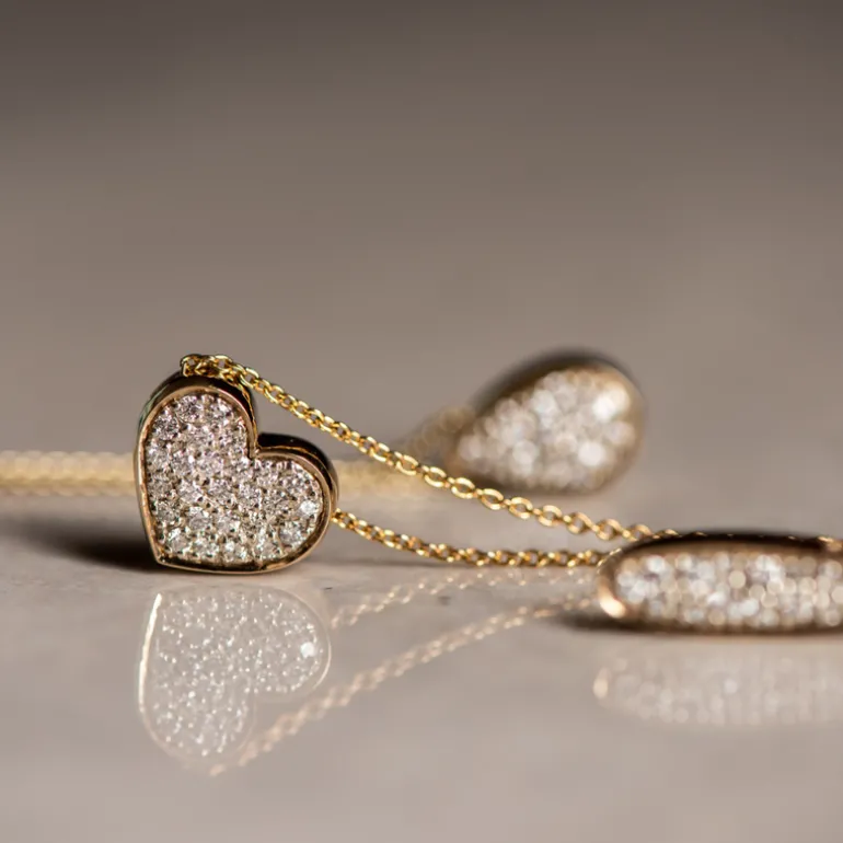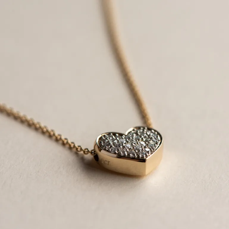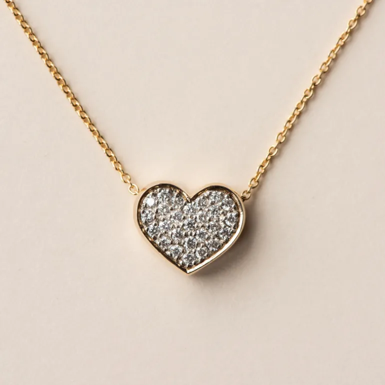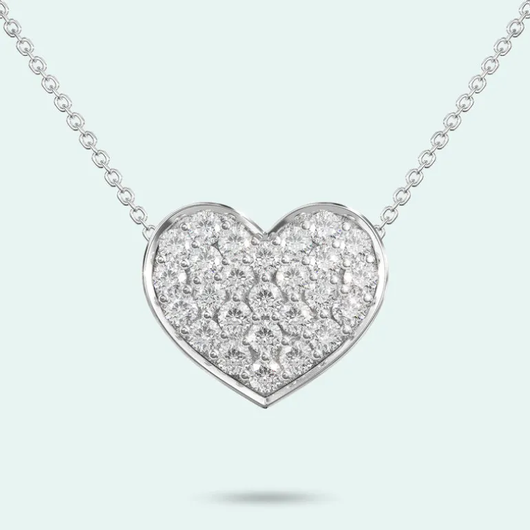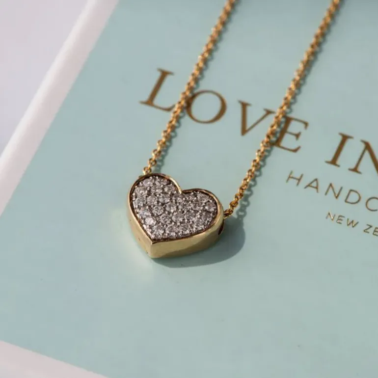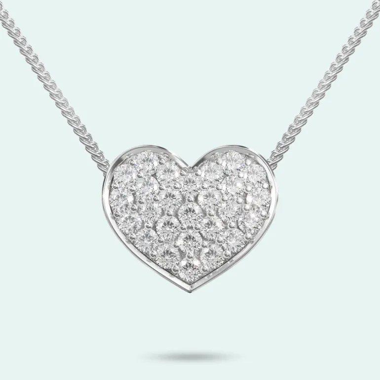 This stunning pendant will light up the room as the entire face of the heart is handset with 26 brilliant cut diamonds or cubic zirconias.