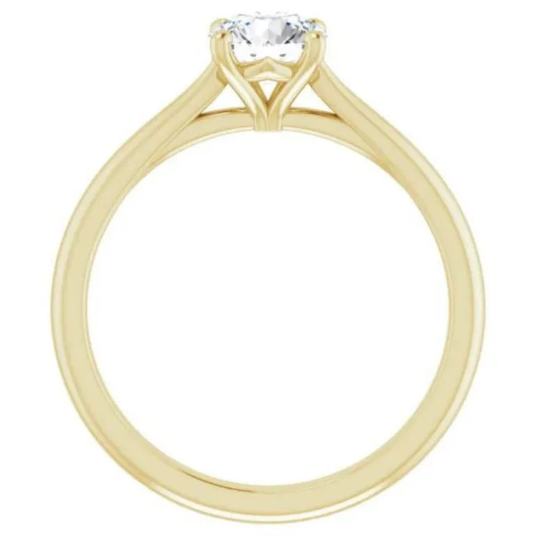 This Vida solitaire ring is set in 14k Yellow Gold and feature a 0.75ct (approx 5.8mm) round brilliant lab created diamond.