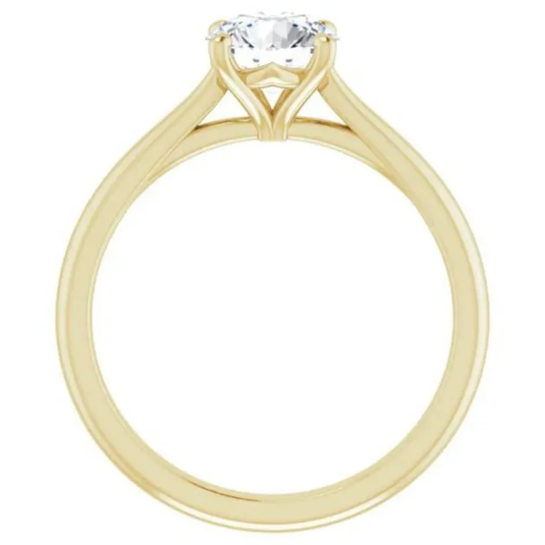 This Vida solitaire ring is set in 14k Yellow Gold and feature a 1.00ct (approx 6.5mm) round brilliant lab created diamond.
