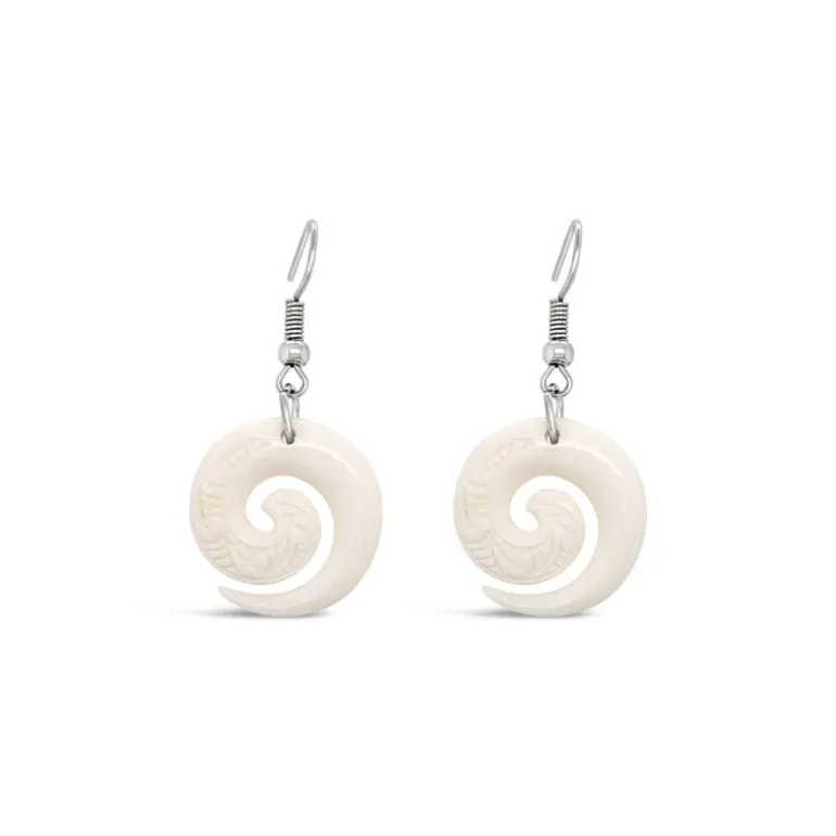 Wild at Heart NZ Carved Bone Koru Earrings
